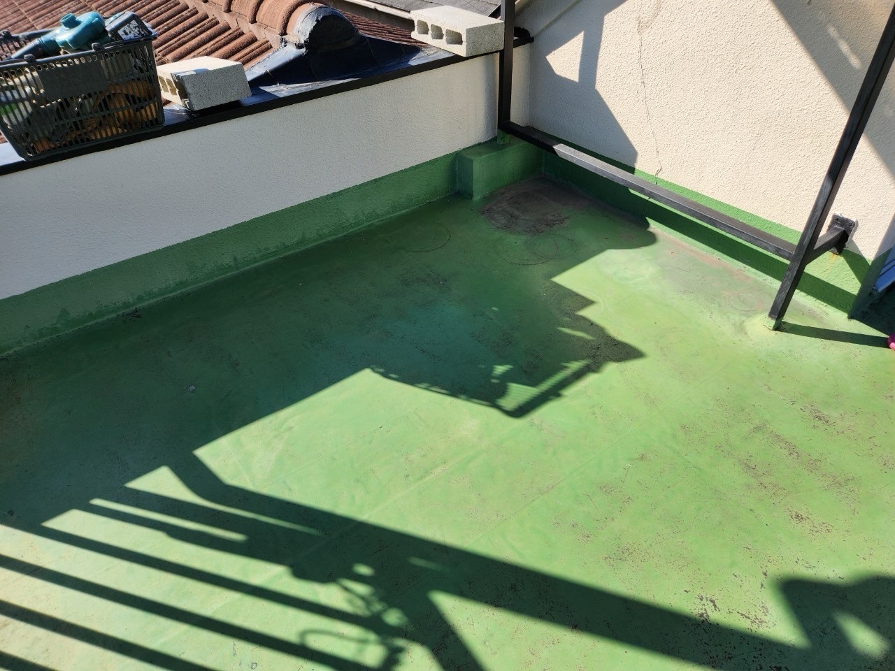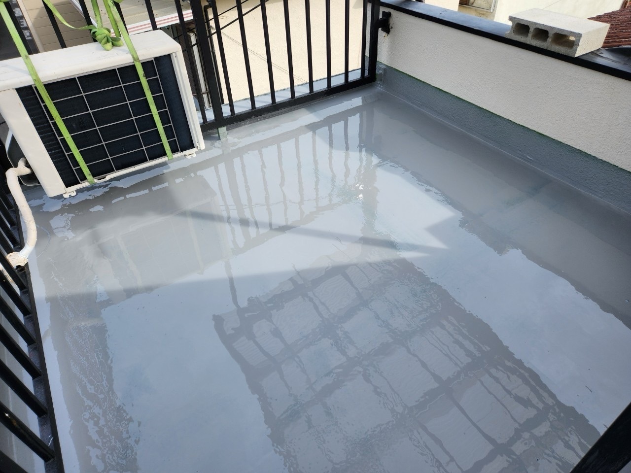 ローラーを使用しムラなく均一に仕上げることを意識し特排に排水溝まわりや立ち上がり部分には細心の注意を払いながら施工を行いました!