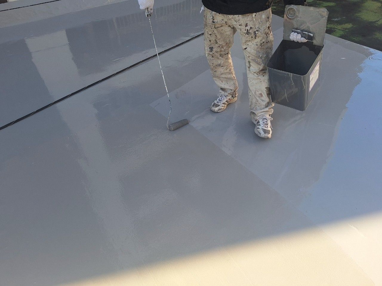 トップコートは、防水層を保護するために実施される仕上げ塗装であり、紫外線や雨水から防水層を守る役割です
