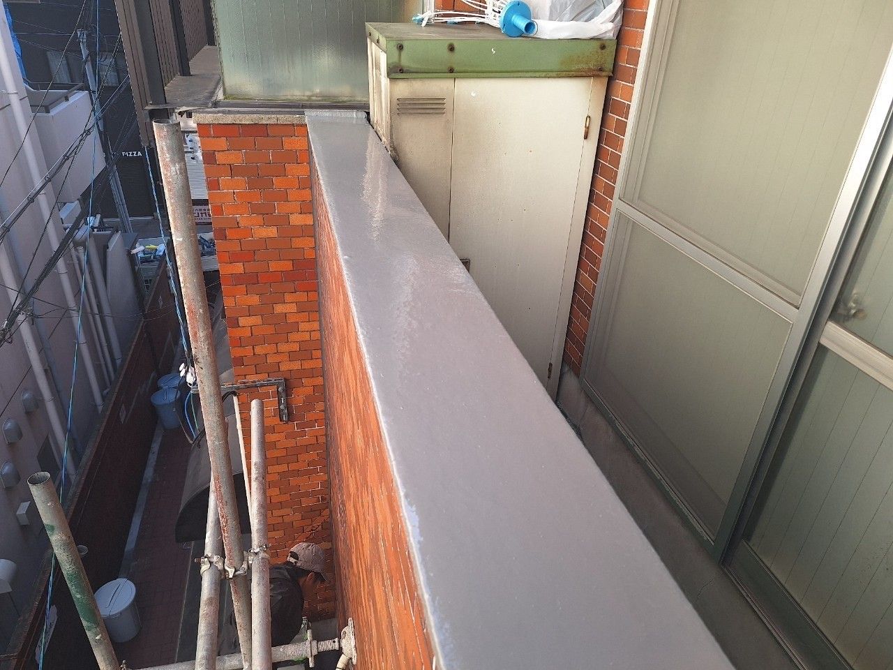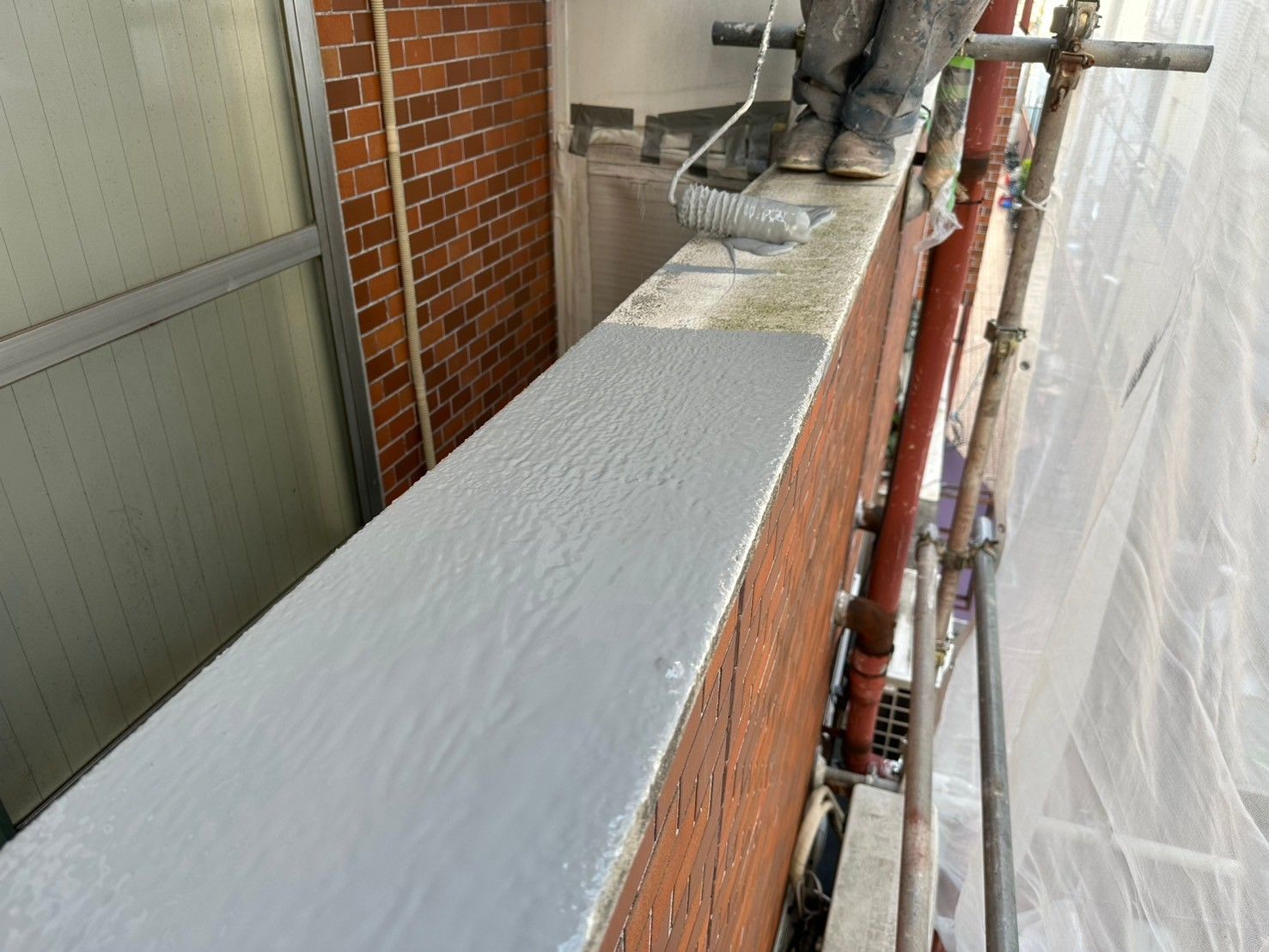 下地を整えた後、中塗り・上塗りを行い、防水トップコートを塗布します。