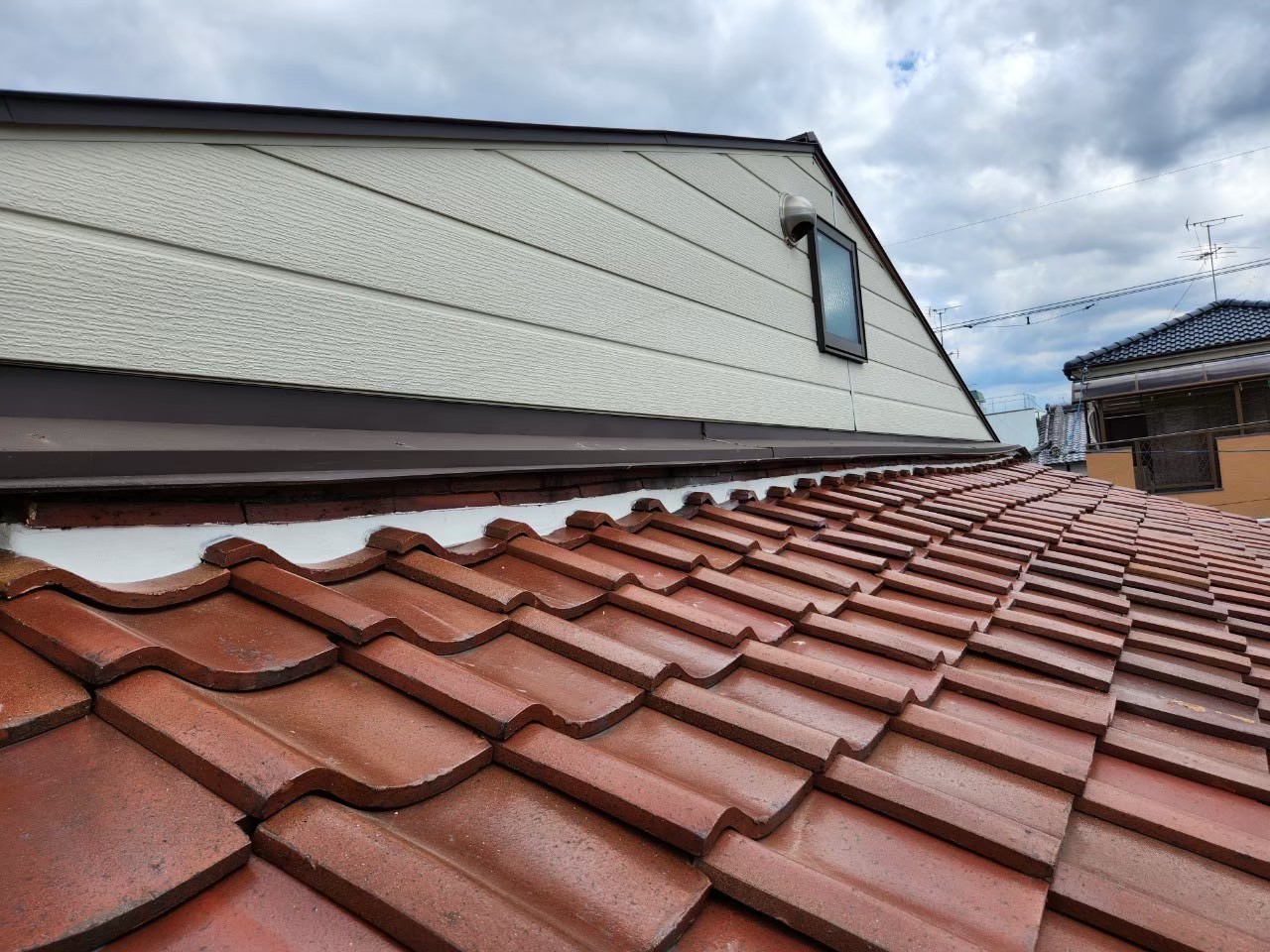 古くなった漆喰の除去を行い、下地を補修した上で新しい漆喰を施工しました。隅々まで均一塗布し、瓦の固定力を高めながら、雨水の侵入を防ぐを実現しました。