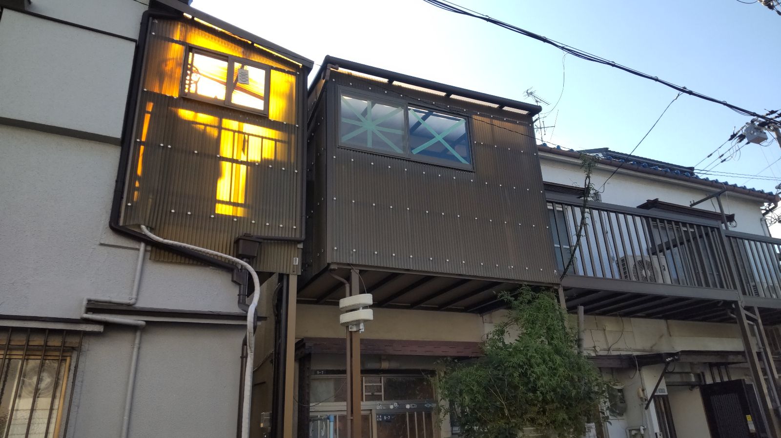 住宅裏手のバルコニー部分は、金属サイディングが使用されていましたが、こちらも劣化が進行しており、特に鉄製部材には赤錆が見受けられました。加えて、板金同士のつなぎ目に打たれていたシーリング材も経年劣化により硬化・ひび割れが起きており、防水性が失われている状況です。
