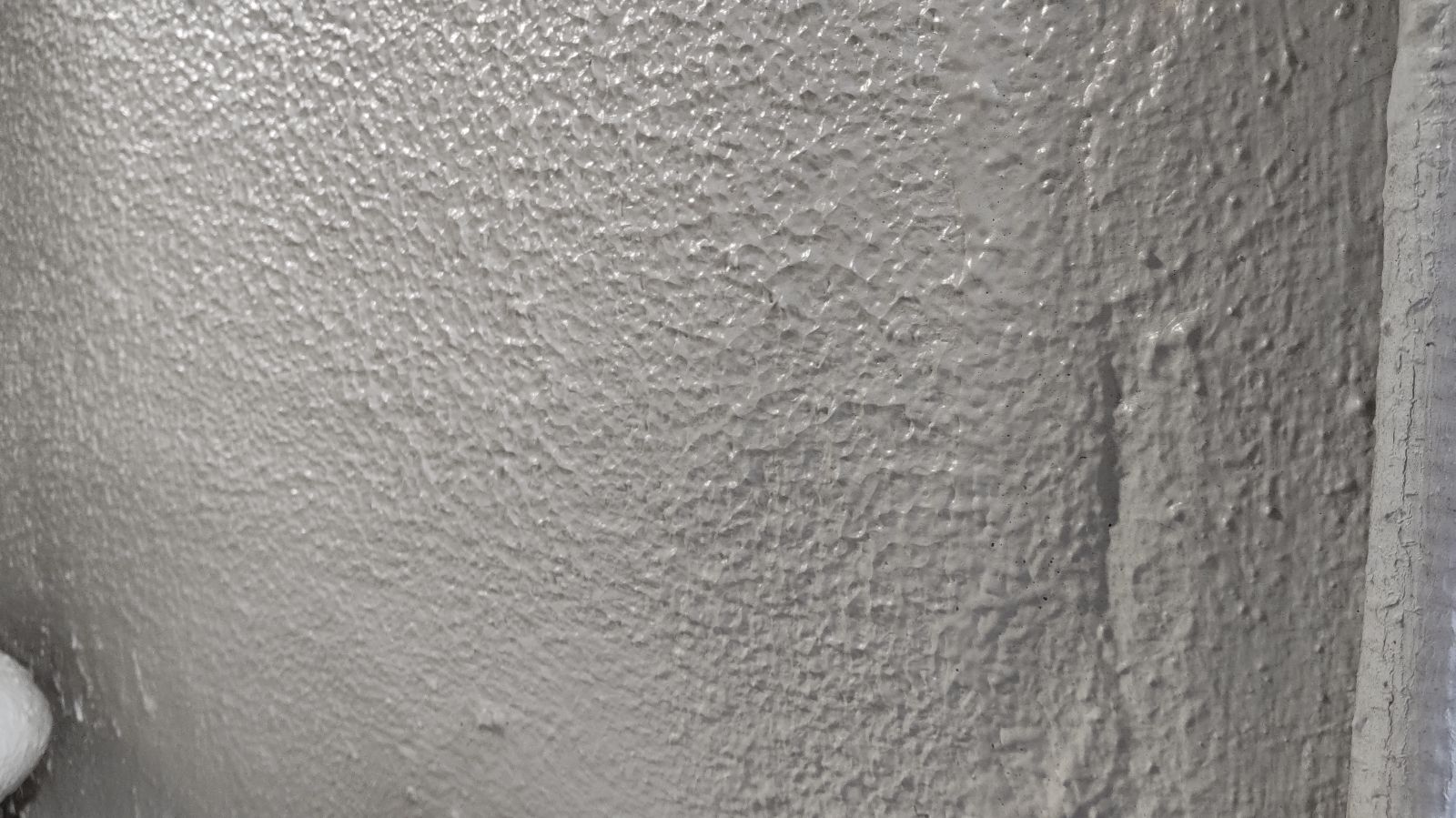 外壁の調査では、モルタル仕上げの面にヘアークラックが無数に走っているのが確認できました。クラックの幅は0.3mm未満と軽微なものではありますが、建物の経年劣化を象徴するサインです。さらに手で触れると白い粉が付着する「チョーキング現象」が進行しており、旧塗膜の樹脂が劣化していることを意味します。