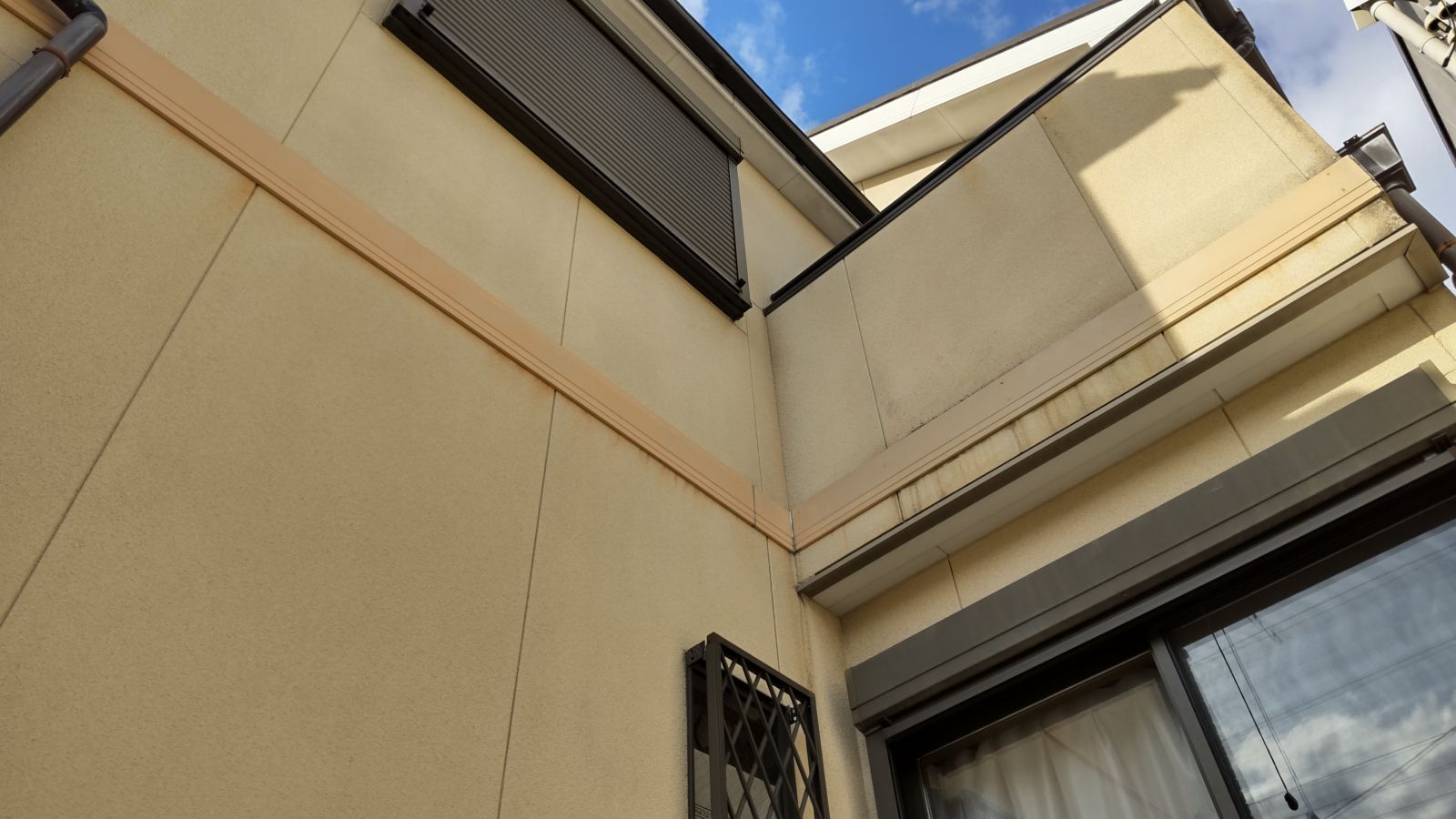 外壁の状態を確認したところ、チョーキング現象が全面に広がっていました。これは塗膜の劣化が進行しているサインであり、防水機能が低下している状態です。特に日が当たりにくい北側の外壁では、水分の乾燥が遅くなり、ひび割れが発生しやすくなっています。