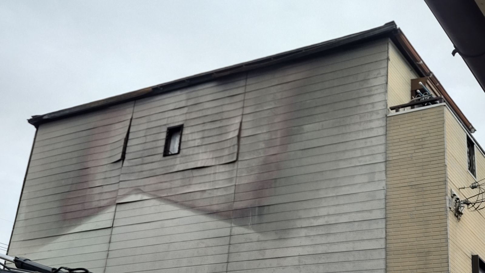 外壁の大きな歪みと反り上がりが示す深刻な劣化