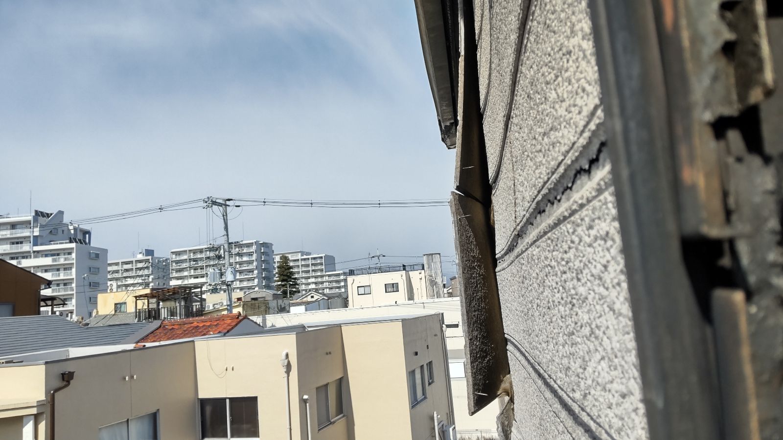 写真で確認できる通り、シーリングが欠落している箇所や、目地の隙間が大きく開いている箇所が複数存在しました。こういった状態では、わずかな雨でも内部に水がしみ込みやすく、すぐにでも対処が必要です。