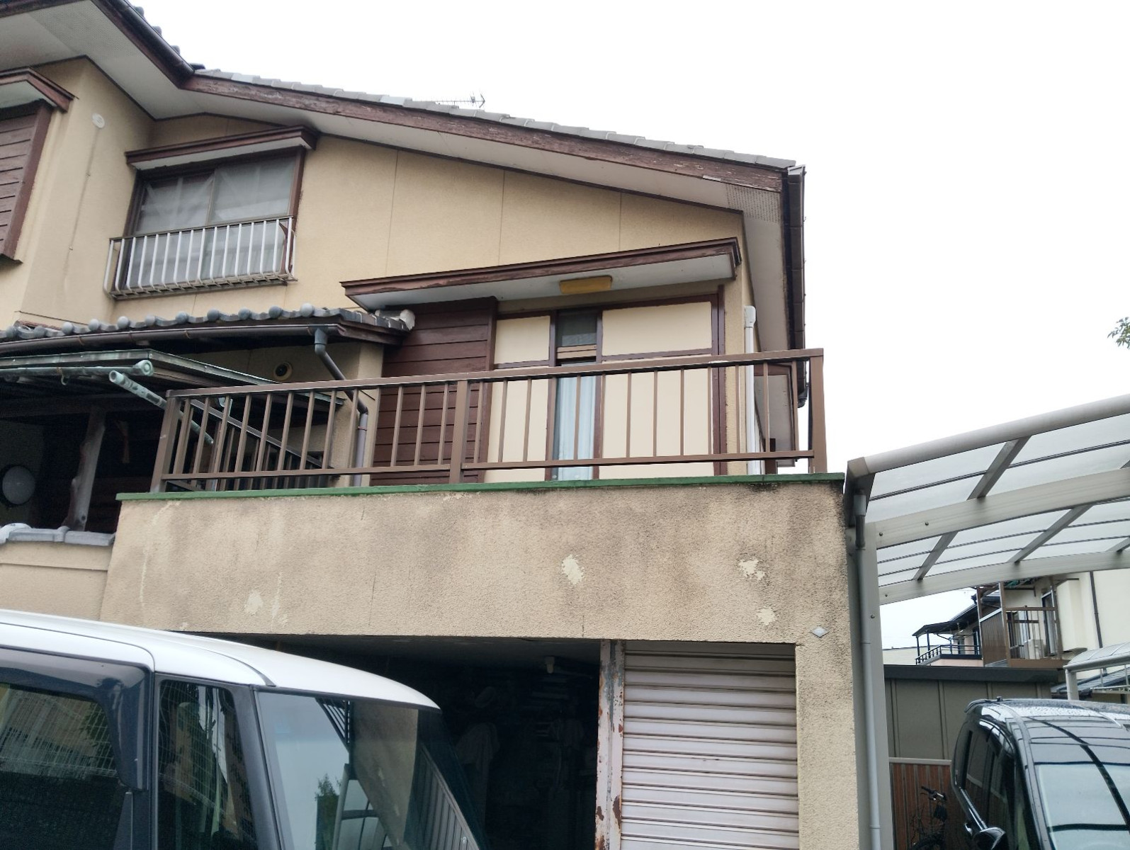 本日は大阪府枚方市小倉東町にて、外壁塗装をご検討中のお客様宅へ外壁の現地調査にお伺いしました。築年数は約20年前後とのことで、「最近外壁の汚れやひび割れが気になってきた」とご相談をいただきました。私は朝一番に事務所を出発し、静かな住宅街に到着すると、落ち着いたベージュ系の外壁が印象的な2階建て住宅が迎えてくれました。大切なお住まいを守るため、細部まで見逃さないよう気持ちを引き締めて調査を開始しました。