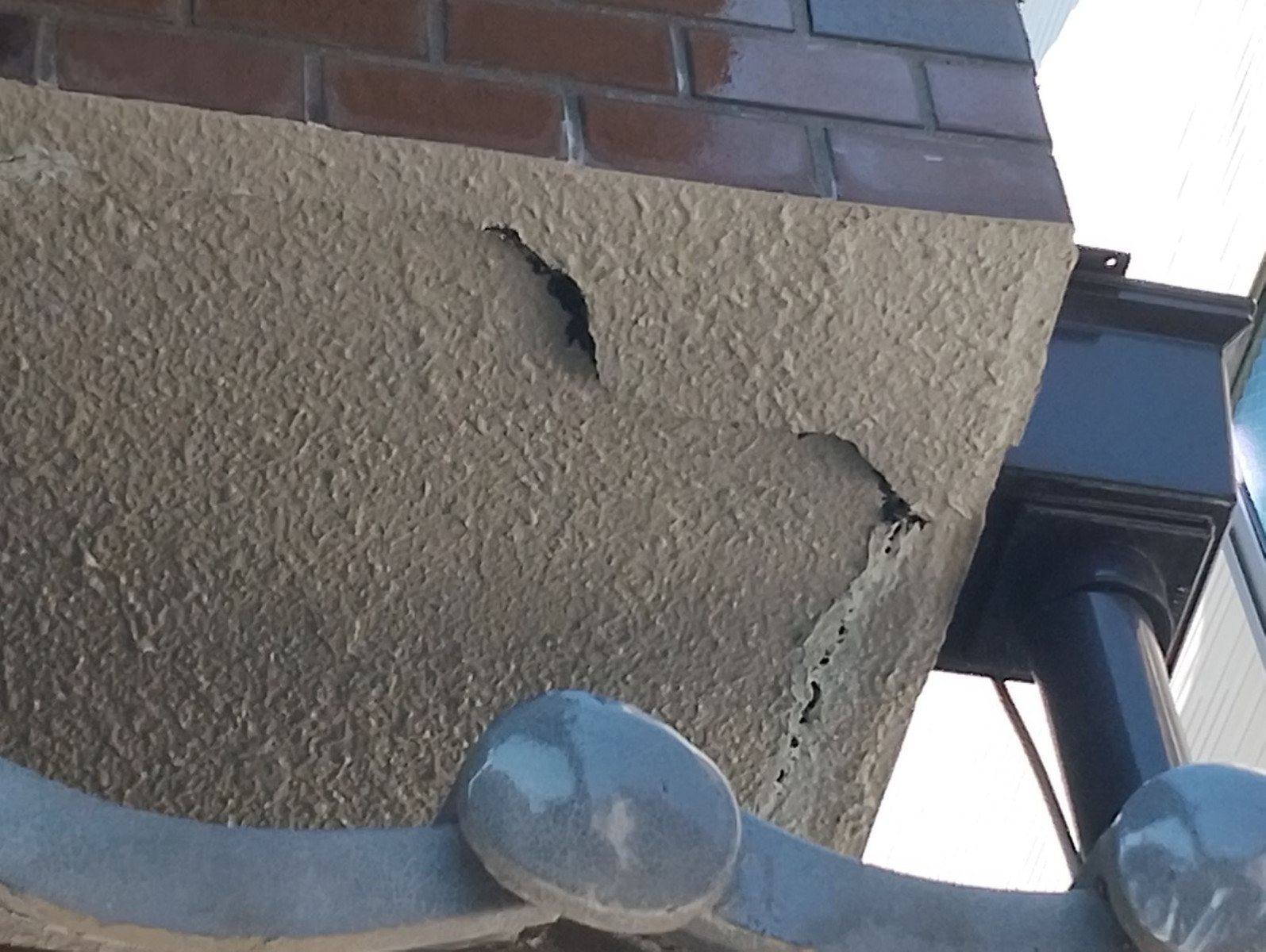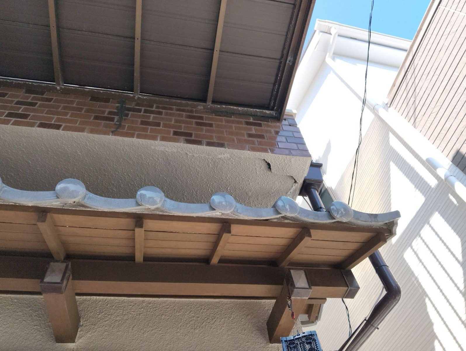 実際に目視した箇所では、剥がれたモルタルの断面に黒ずみが確認でき、内部で水分が滞留していた可能性が高いです。こうした状態を放置すると、下地の木材や鉄筋に錆や腐食が広がり、建物全体の耐久性に悪影響を及ぼすことになります。