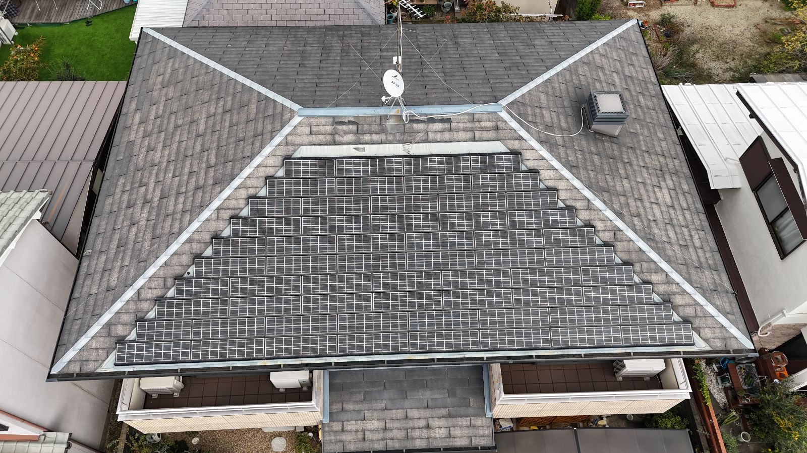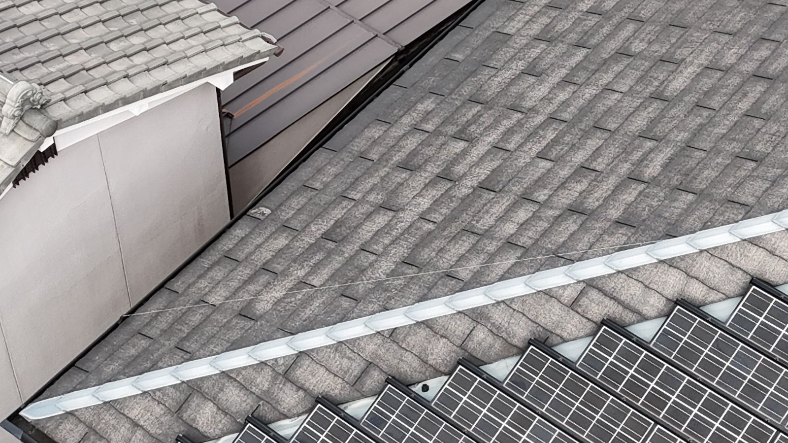 屋根に関しては、スレート材の寿命は一般的に20~30年とされています。塗膜の劣化が進むと、防水性能が低下し雨漏りの原因にもなります。今回のように太陽光パネルが載っている場合は、パネル周囲の処理を丁寧に行うことが重要です。塗装前にはパネルの状態を確認し、必要に応じて清掃・架台の錆落としを行うことで、パネルの寿命も延ばすことができます。