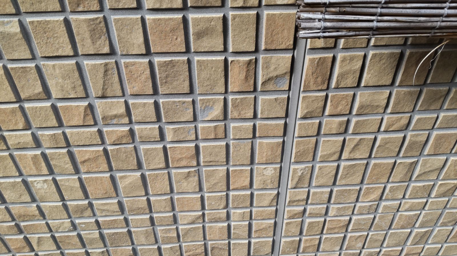 今回のような外壁タイルとスレート屋根の組み合わせの住宅では、それぞれの素材に応じた適切なメンテナンスが必要になります。まず、外壁のモザイクタイルは非常に耐久性が高い反面、目地の劣化やタイルの浮きには注意が必要です。タイル自体は風雨に強く変色しにくい素材ですが、接着力が失われると剥がれ落ちる危険性があり、見た目以上にリスクが潜んでいます。そのため、目地の打ち替えやタイルの点検は定期的に行うことが推奨されます。