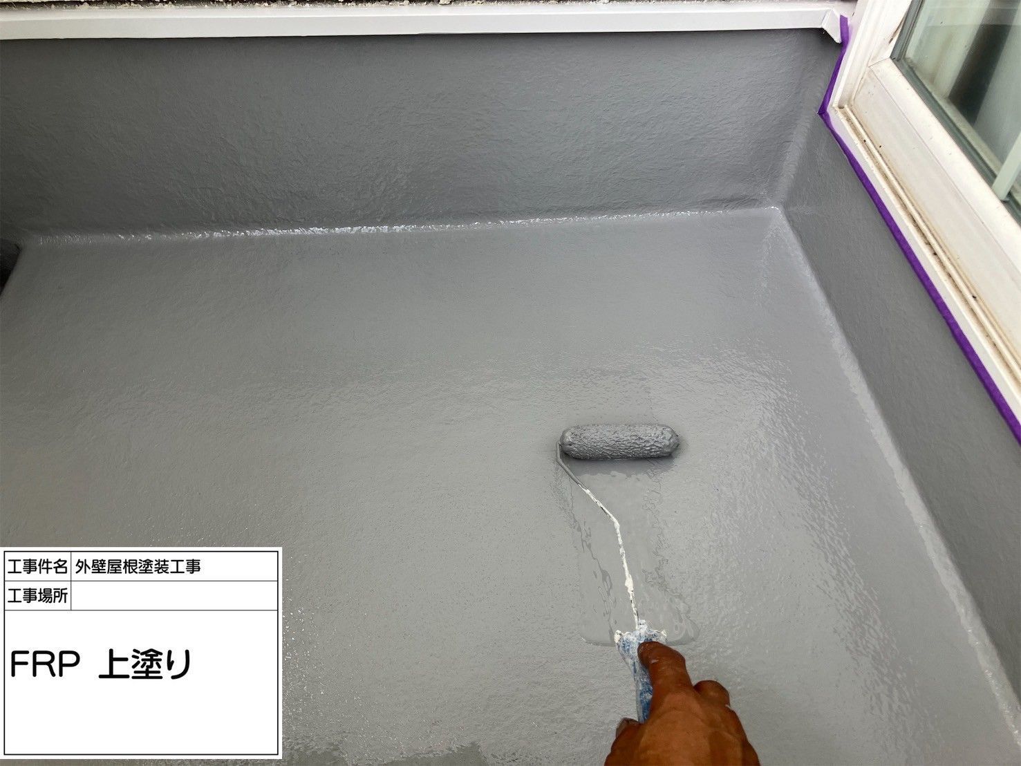 ベランダFRP防水上塗り作業|滑らかな防水層で長期的な安心を