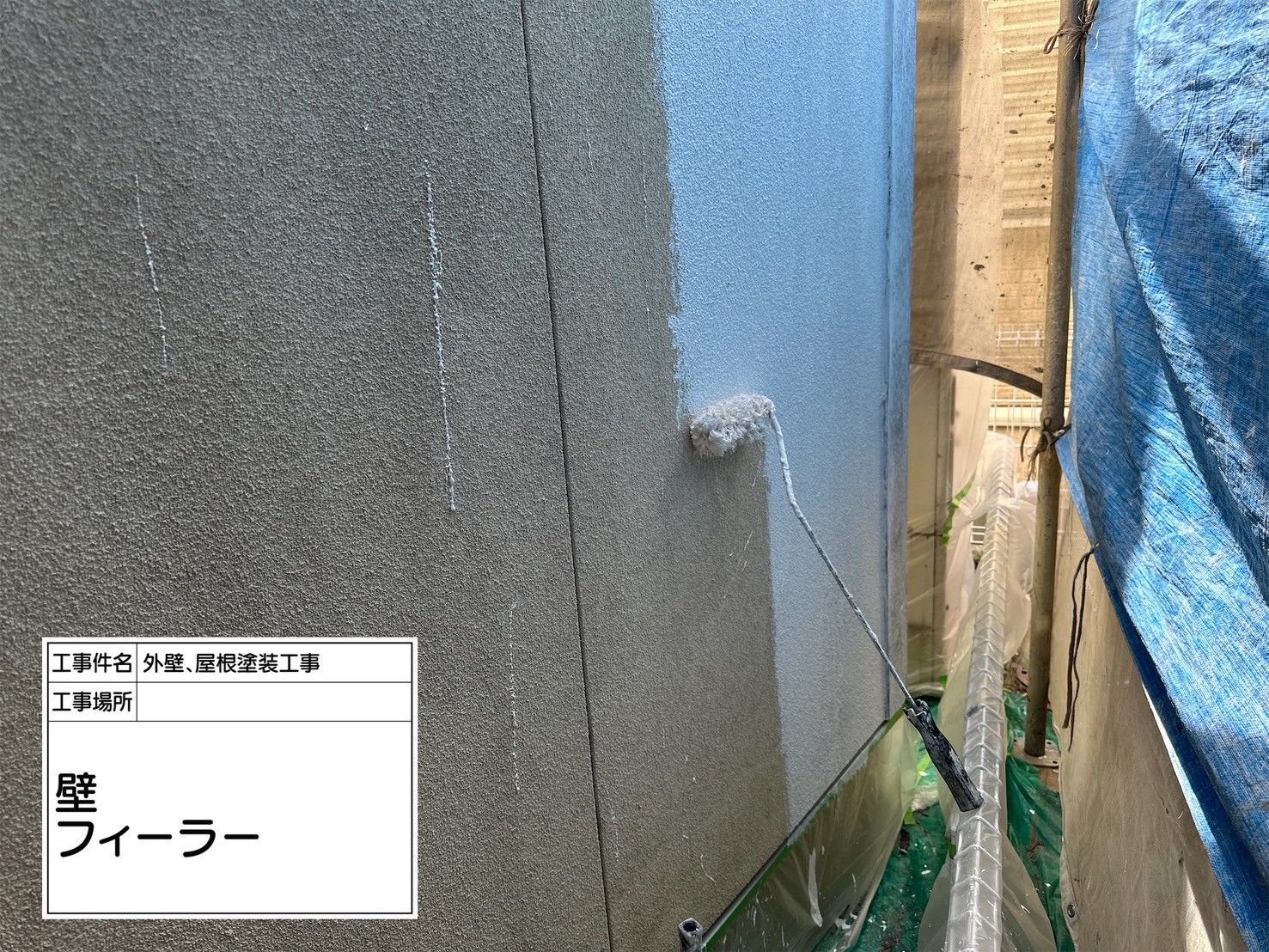 外壁下塗り(フィーラー塗布)