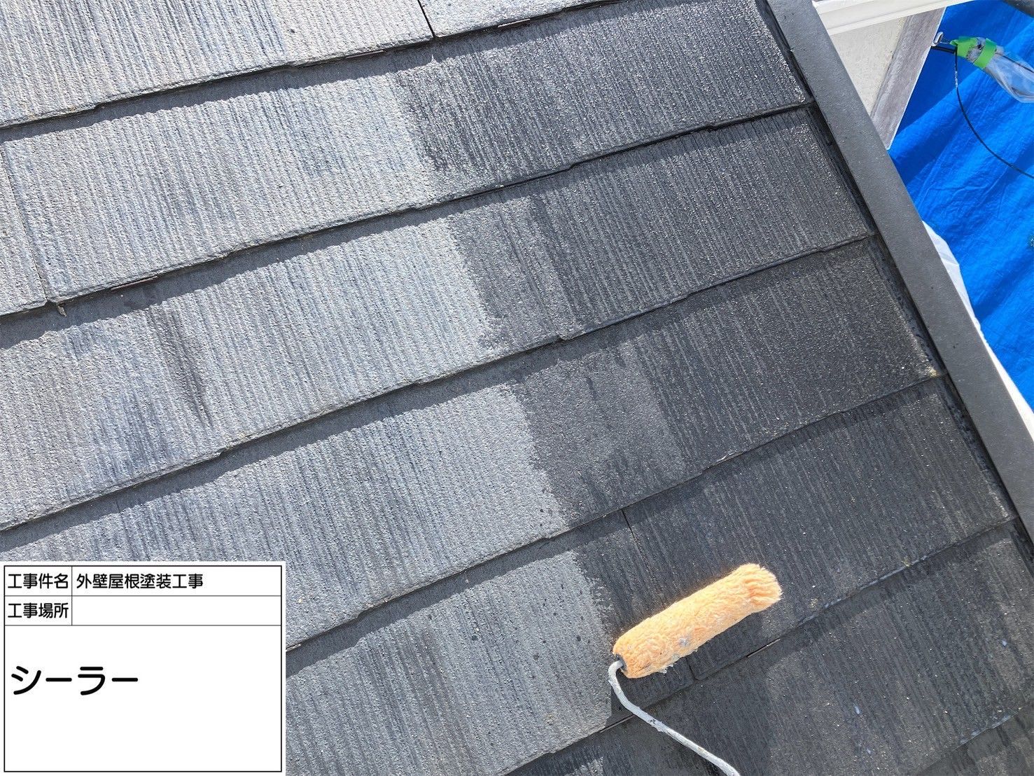 補修後、屋根全体にシーラー下塗りを実施しました。