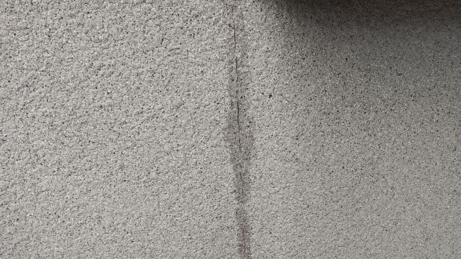 外壁の状態で特に気になったのは、目地のコーキングのひび割れと、壁面の苔・カビの繁殖です。コーキング(シーリング)は、建物の防水・気密性を保つ非常に重要な部分であり、この部分に割れや欠落があると雨水が建物内部に浸入しやすくなります。今回のお宅でも、縦方向に大きく割れたコーキングが複数箇所確認されており、放置すると雨漏りや下地材の腐食へとつながるリスクがあります。