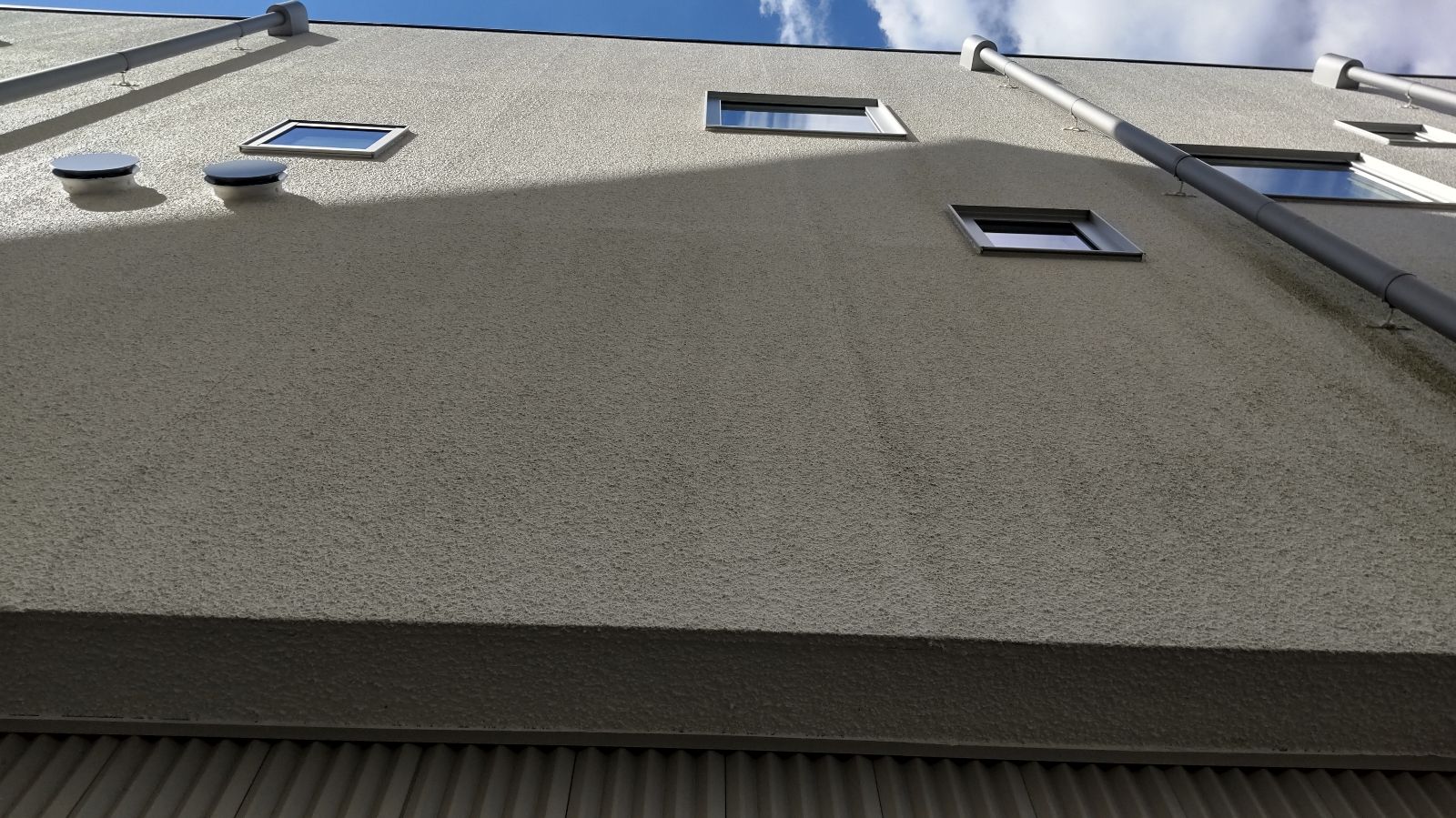 また、外壁表面の塗膜の劣化により防汚性能が失われていたことも原因のひとつです。防汚性の高い塗料を使用していれば、ある程度は雨で汚れが流れ落ちていたはずですが、今回のお宅では10年以上前に建てられてから一度も塗装をしていないとのことで、そもそもの保護機能が低下している状態でした。