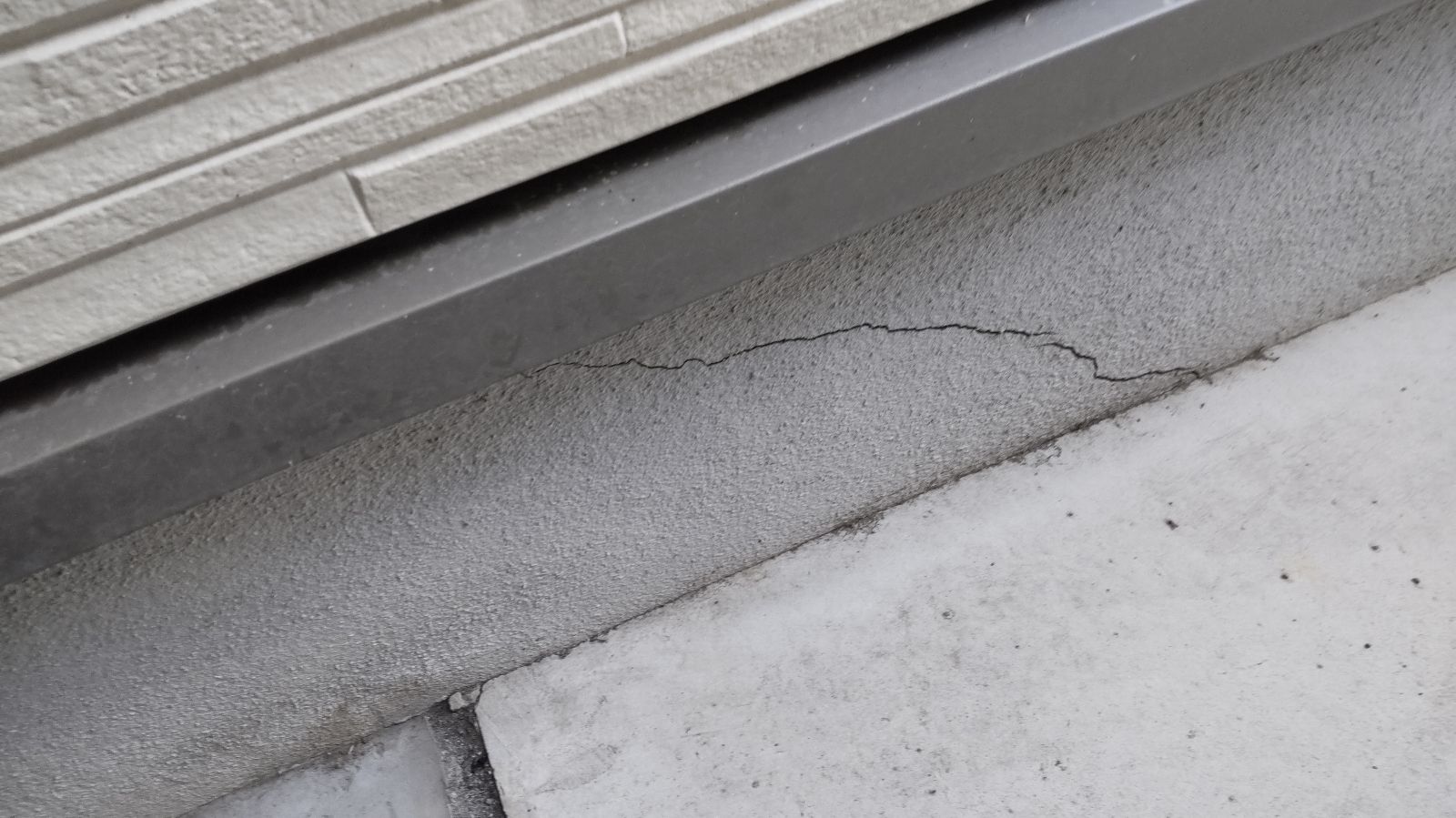 今回の調査で最も気になったのは、基礎部分に生じたひび割れです。住宅の基礎部分は建物全体を支える非常に重要な部分ですが、ヘアークラックが目視できる状態になっており、これはモルタルの乾燥収縮や経年劣化によるものと考えられます。この程度のひび割れでも、放置すれば雨水や湿気が内部に侵入し、鉄筋の腐食や内部構造の劣化につながりかねません。