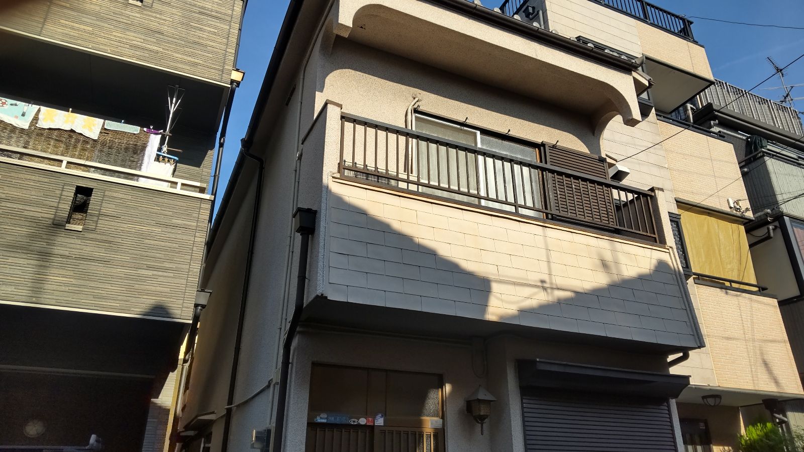 今回は、大阪府寝屋川市仁和寺町にある築年数20年以上の木造2階建て住宅にて、屋根部分補修のための現地調査を行いました。ご依頼主さまからは「最近になってベランダ天井のあたりに黒いシミのようなものが出てきた」とのお問い合わせをいただき、屋根からの雨水の侵入や外壁の劣化の可能性を想定して調査に向かいました。