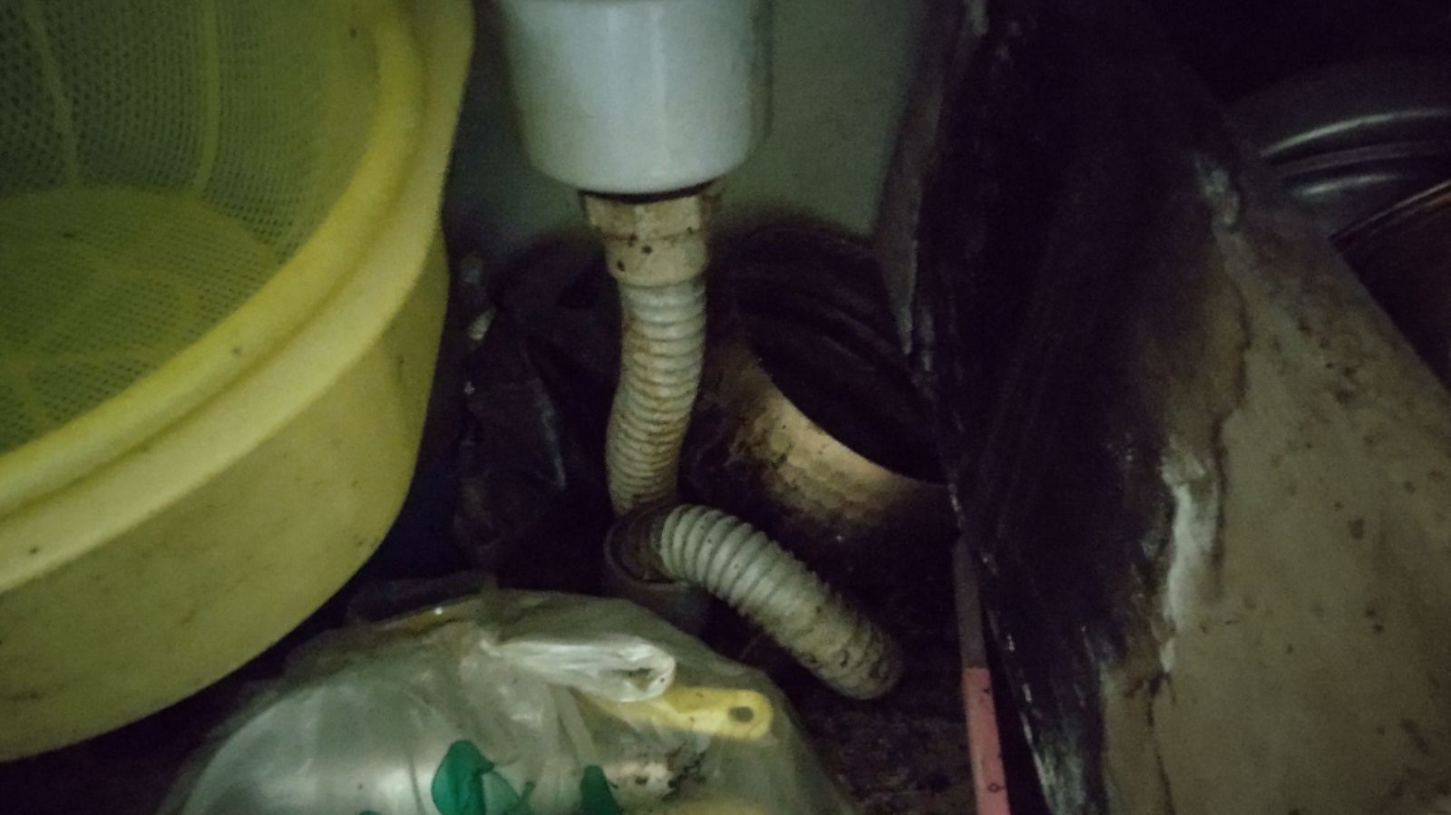 流し台下の水漏れとカビ|早急な給排水配管の更新が必須