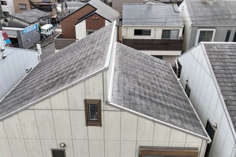 まず、屋根部分に関しては、棟板金の釘打ち直し・コーキング補修・苔除去を含めた高圧洗浄と、防水塗装の再施工をご提案。既存屋根材の状態が著しく劣化している場合には、シーガードやカバー工法も視野に入れるべきであるとご説明しました。