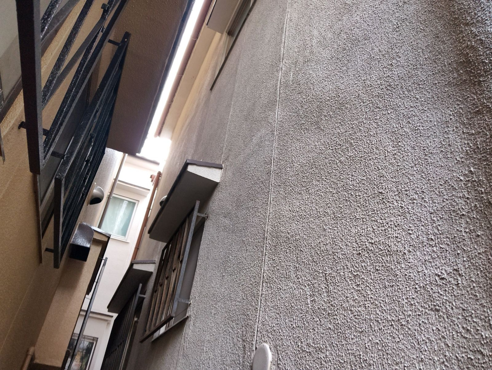 また、表面に多くのヘアクラックも見られ、既存の塗膜が役割を果たしていない状態です。このまま放置すれば美観だけでなく建物自体の寿命を縮めることにもなりかねません。
