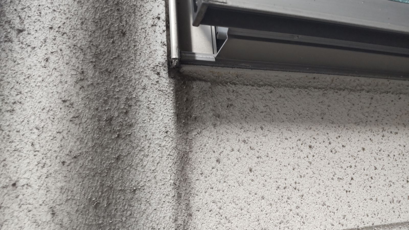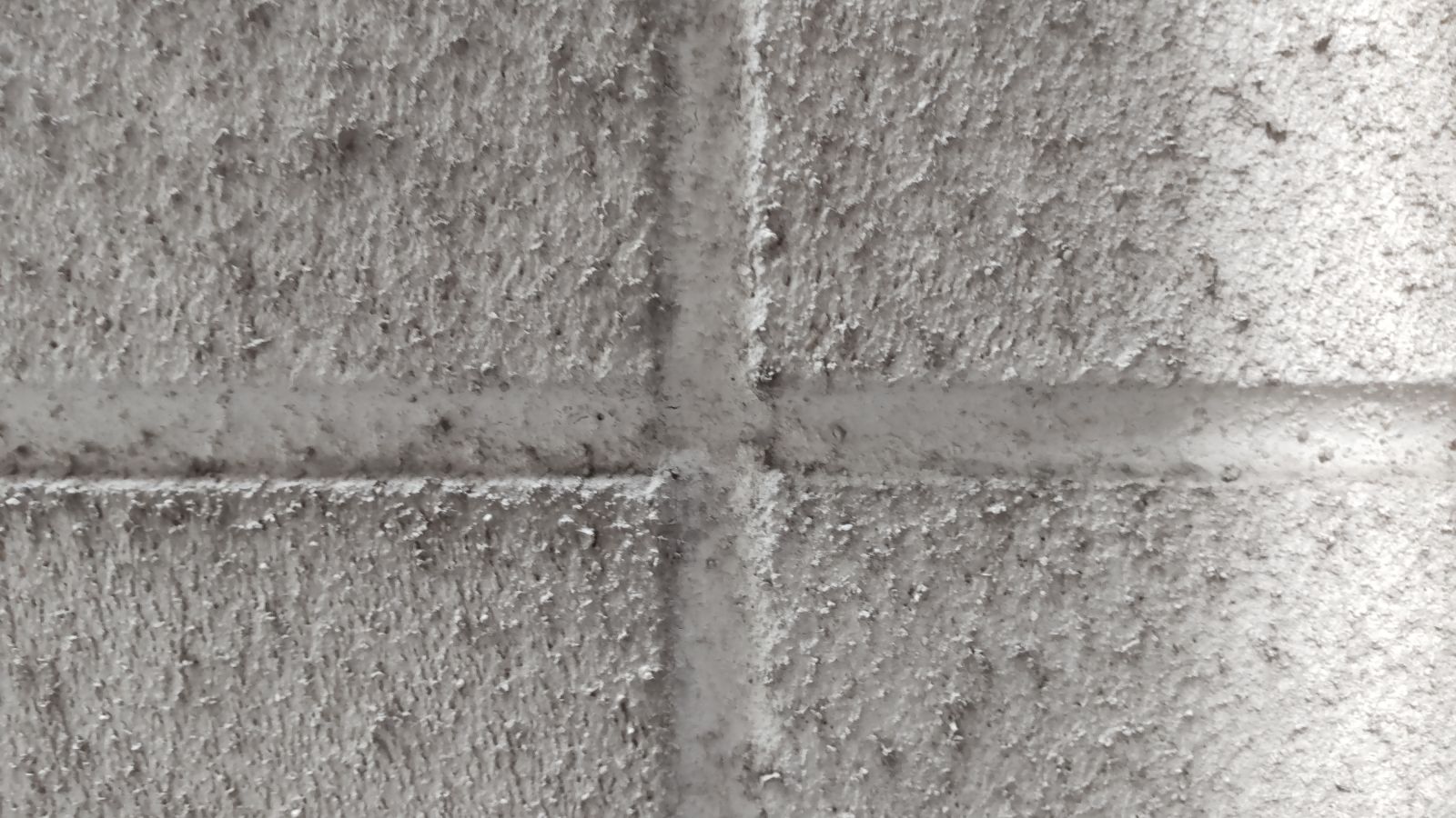 外壁の調査中、手で壁を擦ると白い粉が手に付着する「チョーキング現象」が広範囲で確認されました。これは塗膜が紫外線や雨風によって分解され、顔料が表面に浮き出てくる現象です。見た目の劣化だけでなく、防水性・保護機能が著しく低下している状態を示しています。