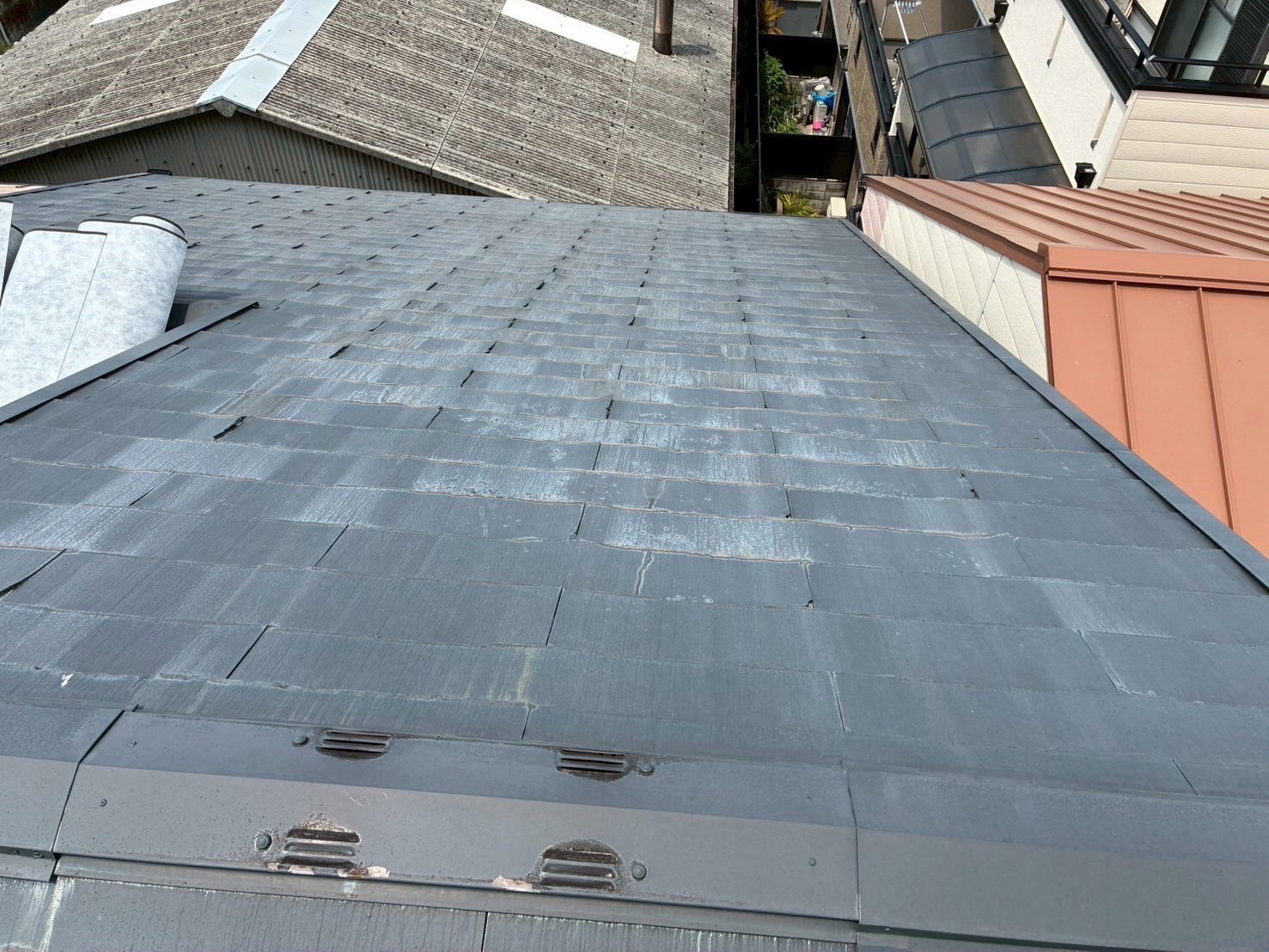 屋根全体の色あせが顕著で、場所によっては前回の塗装のムラも見受けられました。