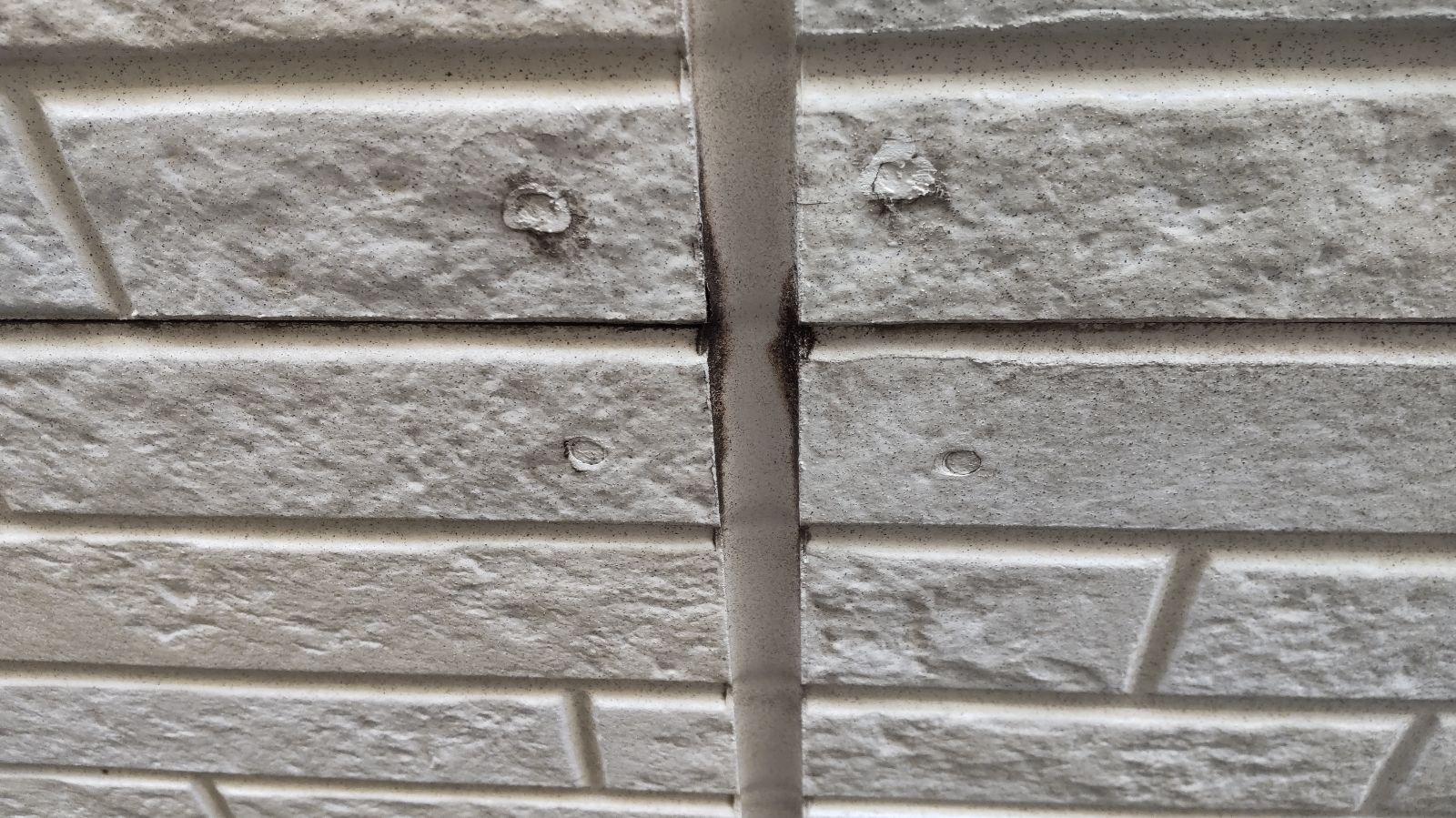 外壁の下部やサッシ周り、さらに一部の目地には、黒カビや藻のような汚れが目立っていました。これは主に、雨だれや日照時間が少ない面に発生しやすく、長期間放置していると外壁の素材そのものを傷めてしまいます。