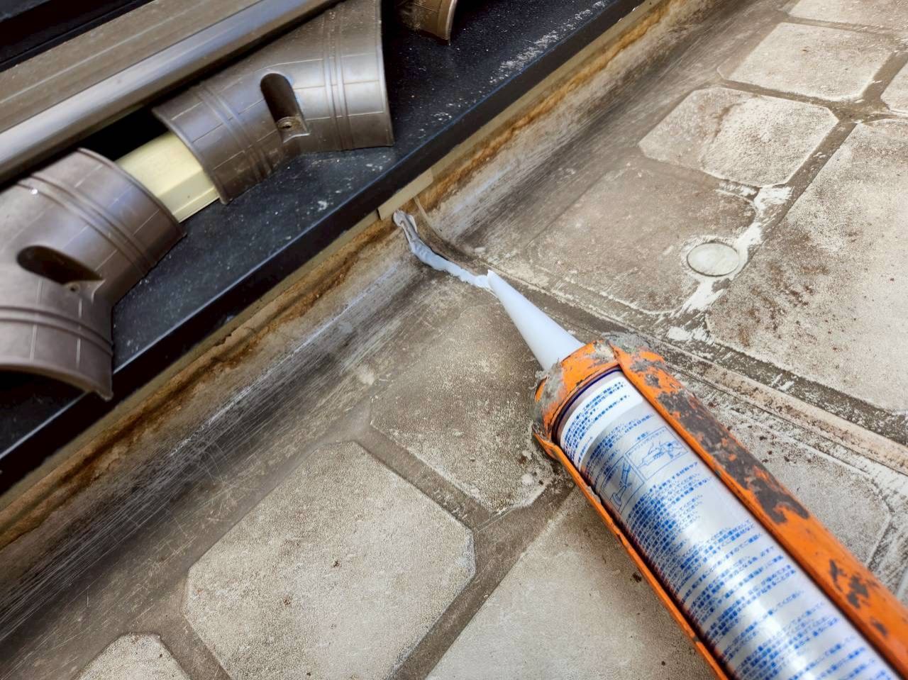 写真に写っているように、コーキング材を充填する前に清掃と下地調整を行い、専用の道具で隙間なく施工されています。コーキングは見た目以上に技術が必要で、空気が入らないよう均一に押さえることで、防水性能を最大限に発揮します。