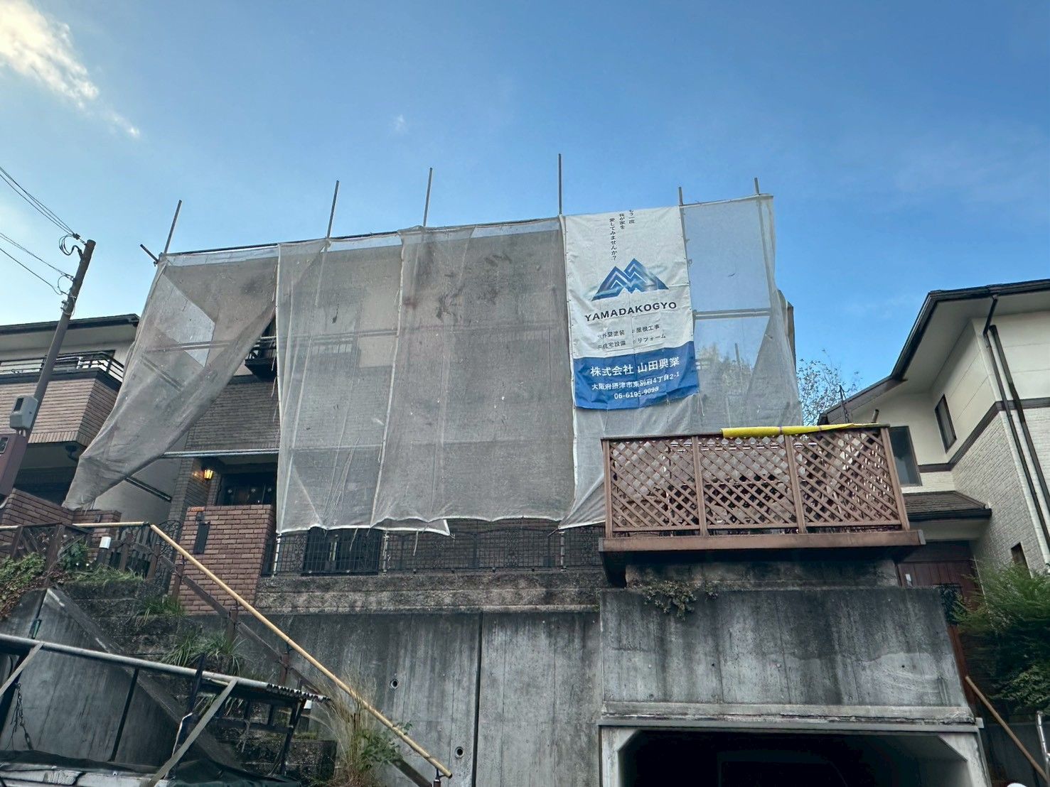 足場組立の段階で問題があると、その後の塗装工程すべてに影響が出てしまいます。例えば、足場が不安定だと職人が無理な体勢で作業することになり、塗りムラや施工不良の原因になります。今回の吹田市の現場では、足場の組立精度が高く、安心して次の工程へ進める状態でした。良い塗装工事は、良い足場から始まるということを改めて実感した現地調査となりました。
