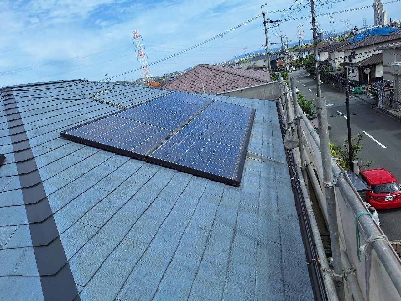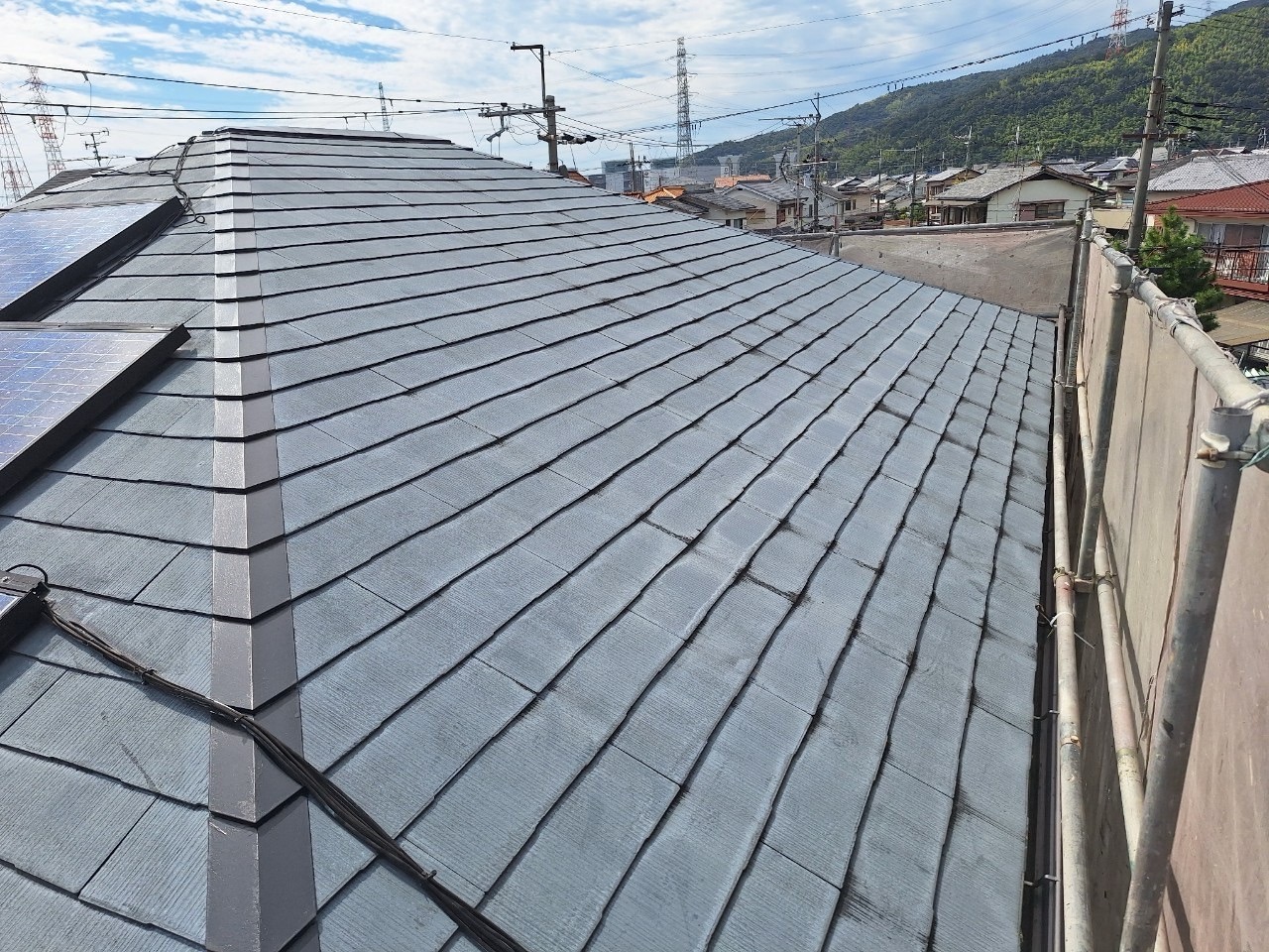 工事期間中の足場も、パネルと作業導線の関係を考慮した組み方が求められます。山田興業では、太陽光メンテナンス部門との連携により、屋根工事と発電設備の両方を熟知した職人が対応します。過去にも同様の現場を多数経験しており、今回も安心してお任せいただける体制が整っています。