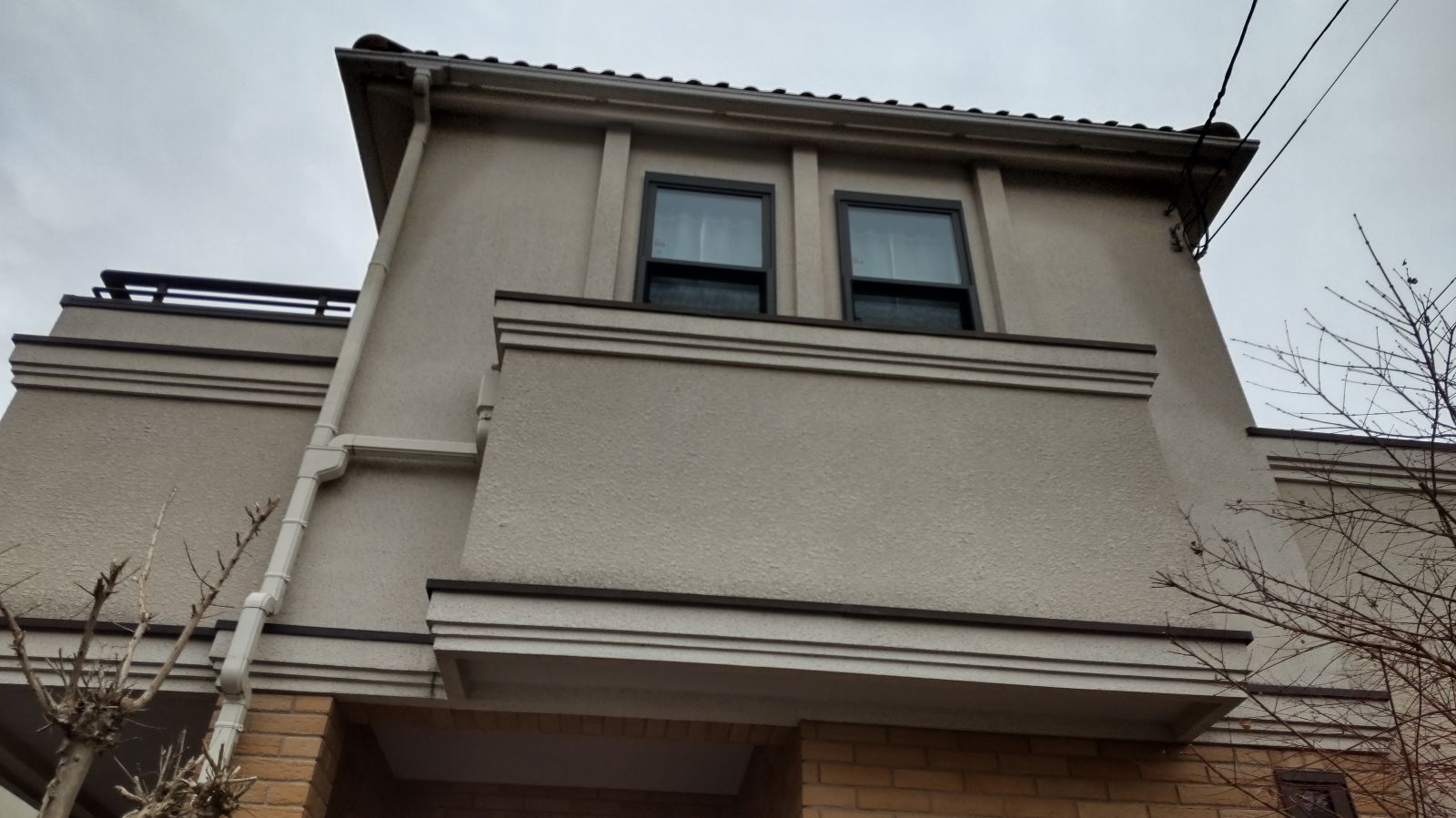 現場は築15年程度の戸建住宅で、2階建てのモルタル外壁仕上げ。お客様からは「外壁に汚れが目立ってきたこと」「ベランダ床面のひび割れや水はけの悪さ」が気になるとのご相談を受けていました。