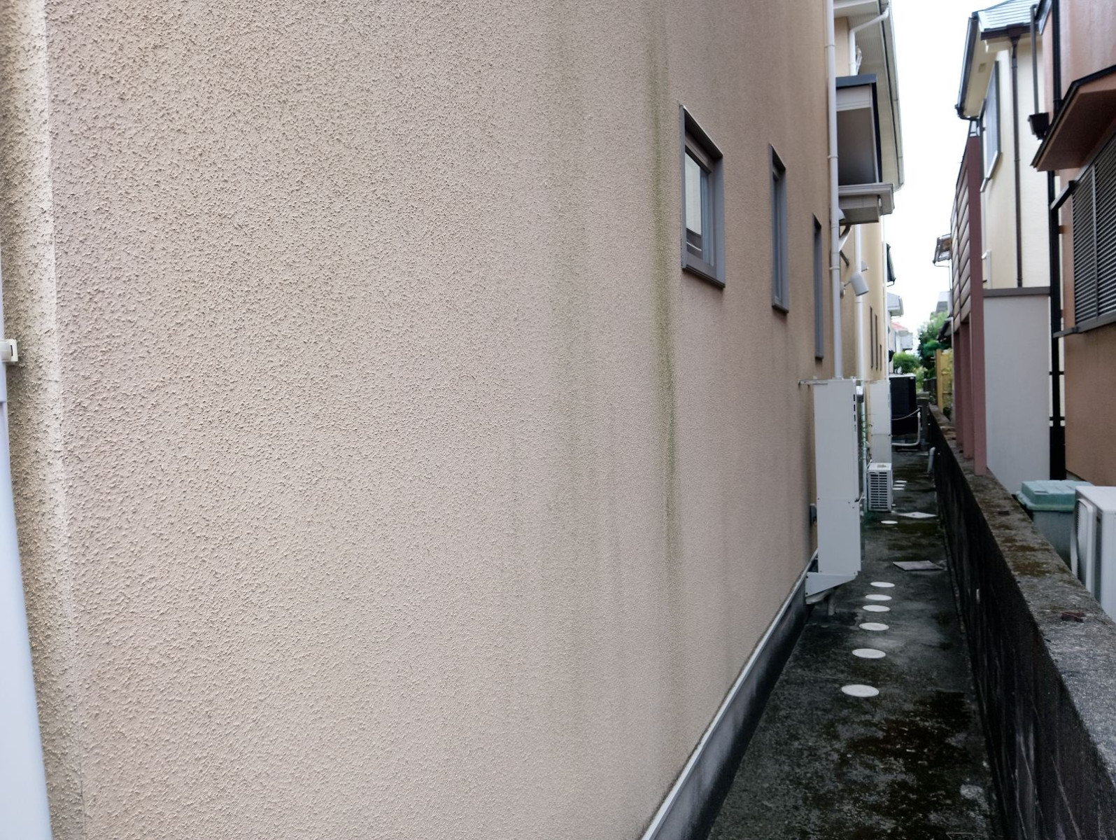 外壁にチョーキングとコケを確認|防水性能が著しく低下していました