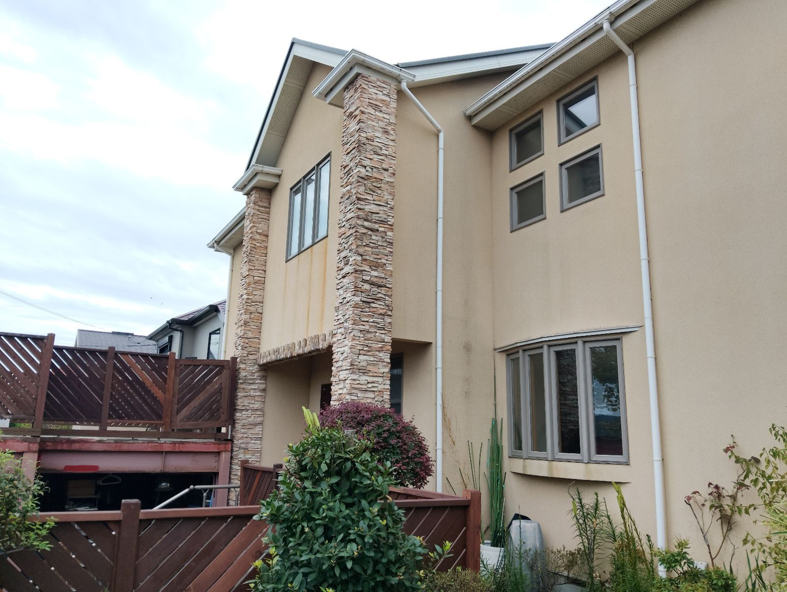こうした状況に対しては、まず外壁全体を高圧バイオ洗浄で徹底的に清掃し、コケや汚れをしっかり除去したうえで、耐候性の高いシリコン系塗料またはフッ素塗料による塗装を行うことが最適です。山田興業では、ただ塗装するのではなく、下地からしっかりと整えることを重視しており、今回もその方針でご提案を進めてまいります。