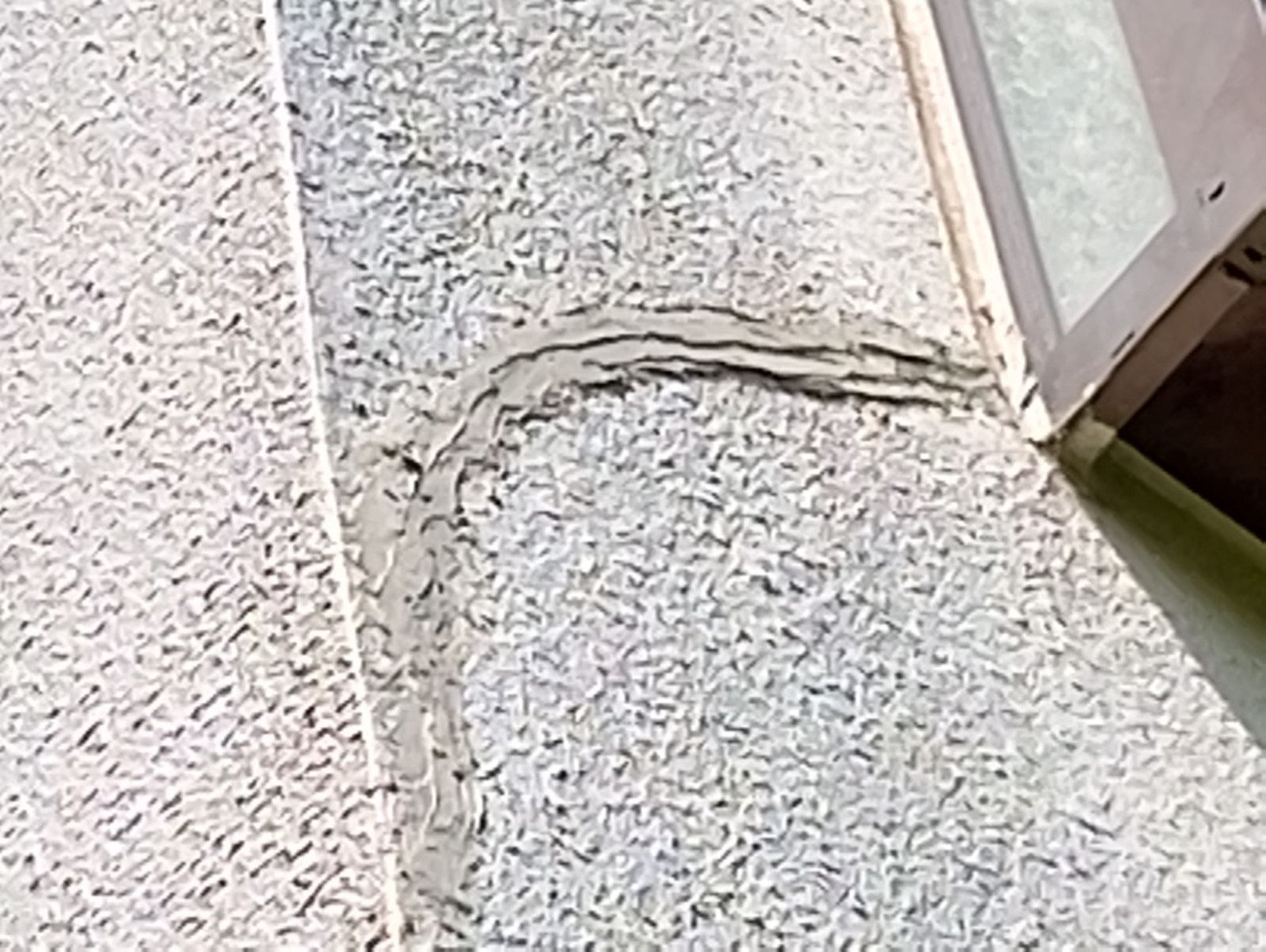 ベランダは常に風雨や紫外線にさらされる場所であり、定期的な防水メンテナンスが欠かせません。しかし本現場では、過去に一度も防水施工を行っていないとのことで、防水層の膨れや剥がれは確認できなかったものの、雨水の染み込みやすい状態であることは確かでした。