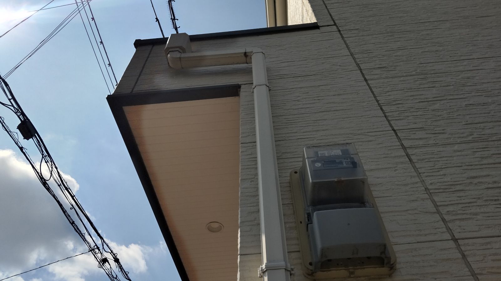 軒天、排水パイプの塗装