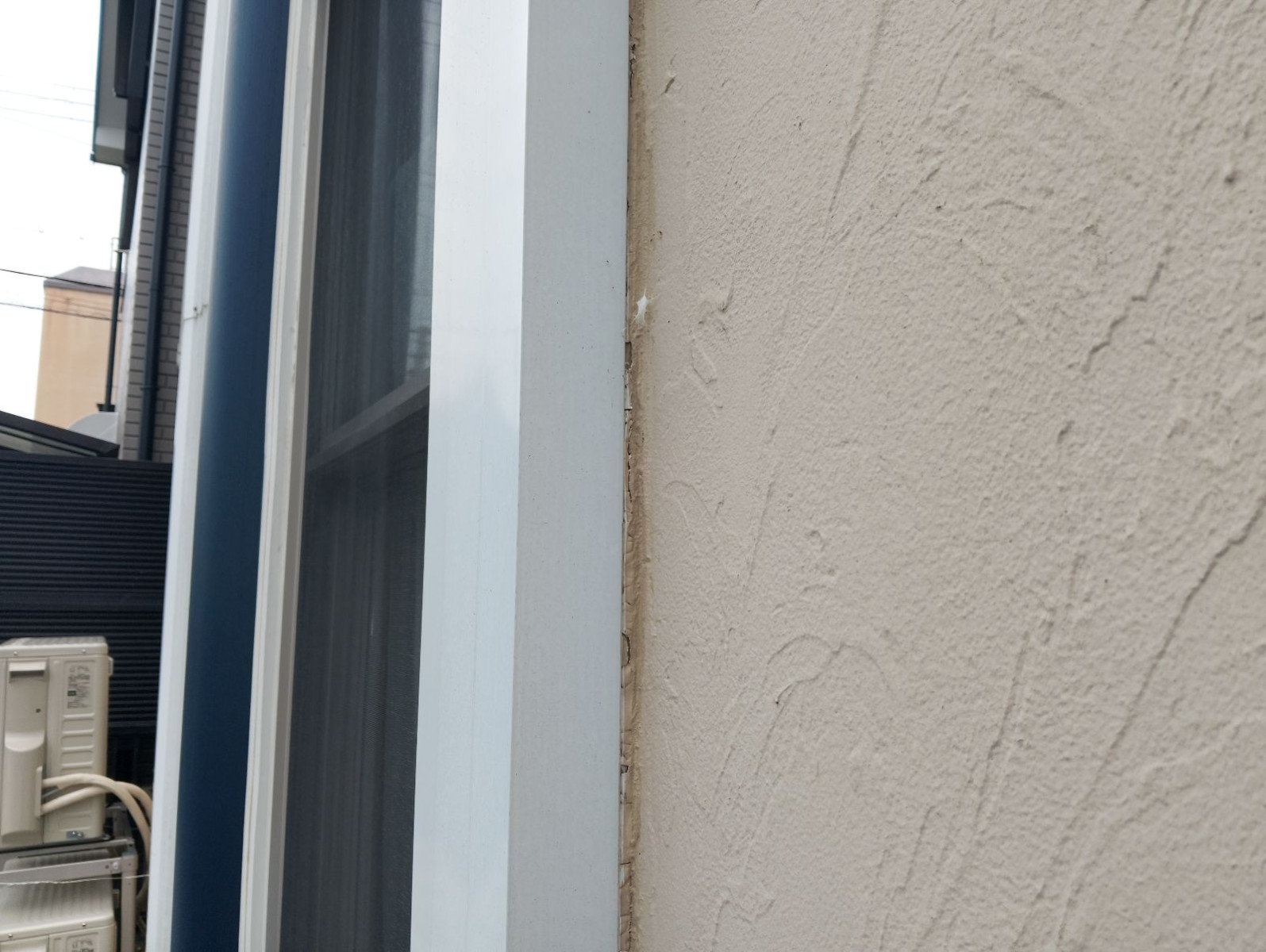 特に北側のサッシ周辺では、汚れとともに細かなカビの発生も見られました。これは雨水の侵入を裏付ける兆候であり、放置すれば壁体内の断熱材や木部が水分を含み、長期的に腐食・カビの温床となる恐れがあります。