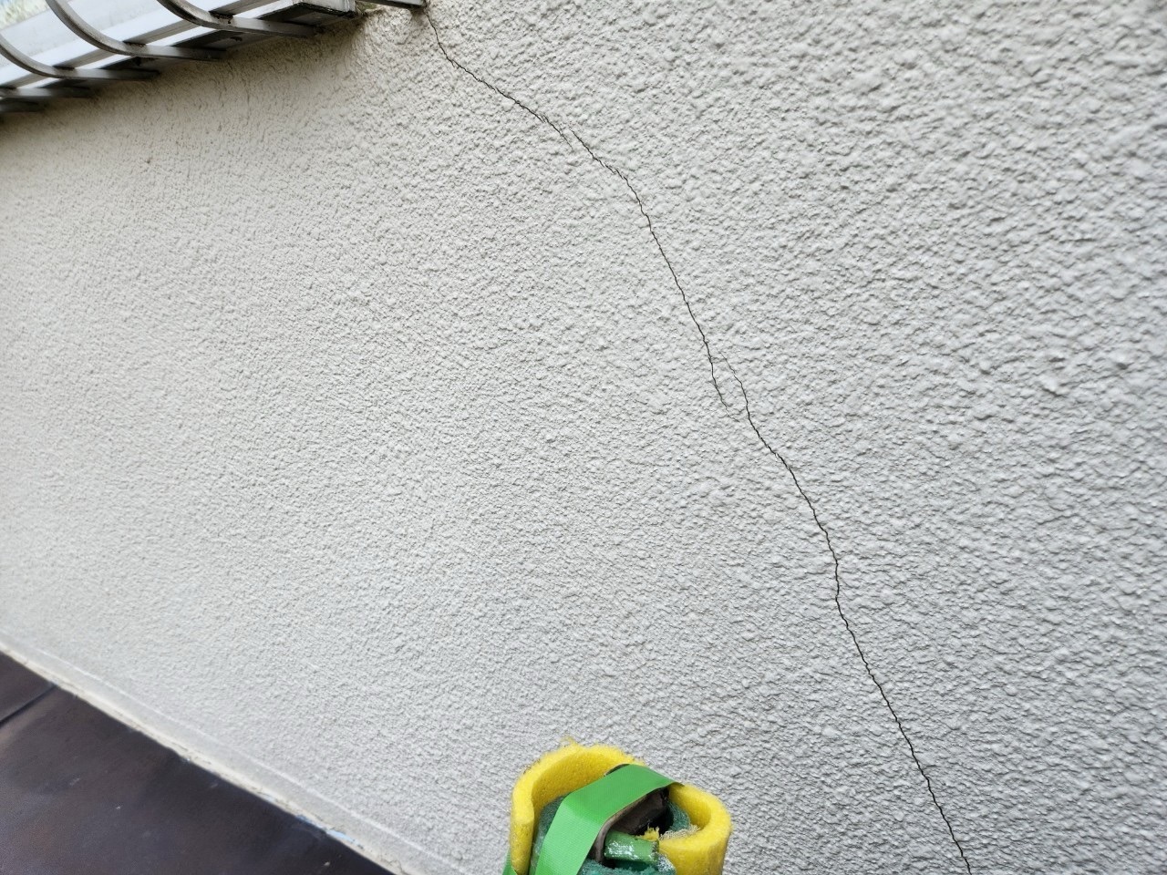 外壁の一部に目視でも確認できるクラック(ひび割れ)が発生していました。
