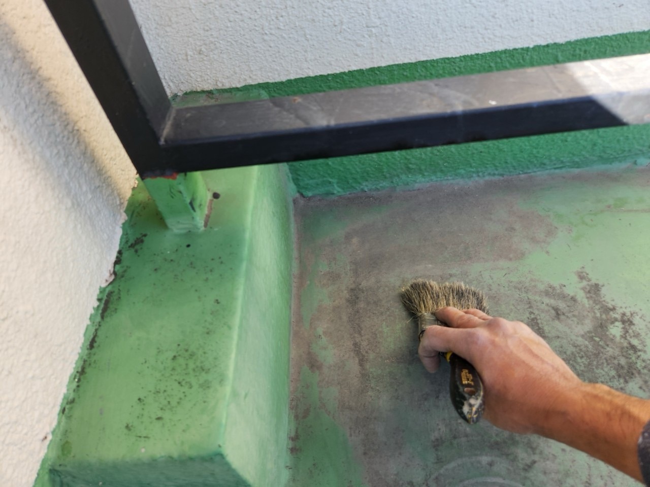 施工後は、ベランダ全体・補修箇所の仕上がりを点検し、清掃を行った上で、お客様にも状態をご確認いただきました。