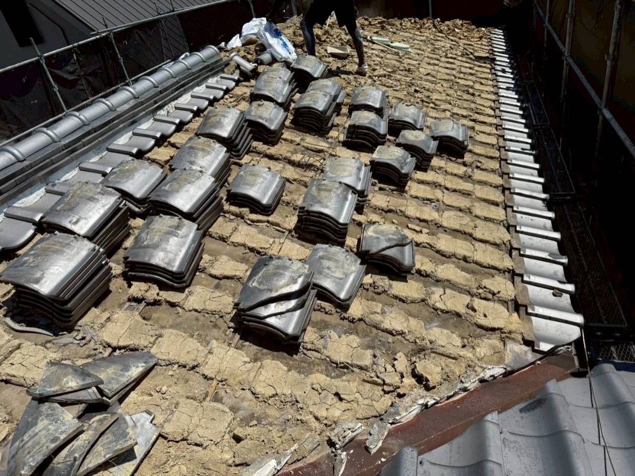 既存の瓦を1枚ずつ丁寧に撤去していきます。