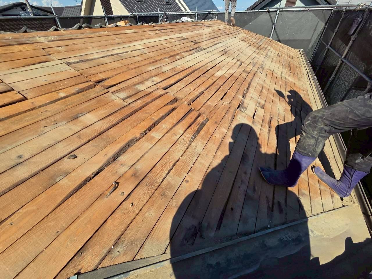 瓦と土をすべて撤去すると、野地板が表面に出てきます。
